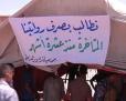 ورفع الاجراء لافتات كتب عليها (نريد حقوقنا ومطالبة بتثبيتنا على الملاك الدائم) ، و (نطالب بصرف رواتبنا المتاخرة منذ عشرة اشهر) ، و (نطالب باقالة وزير الموارد المائية).