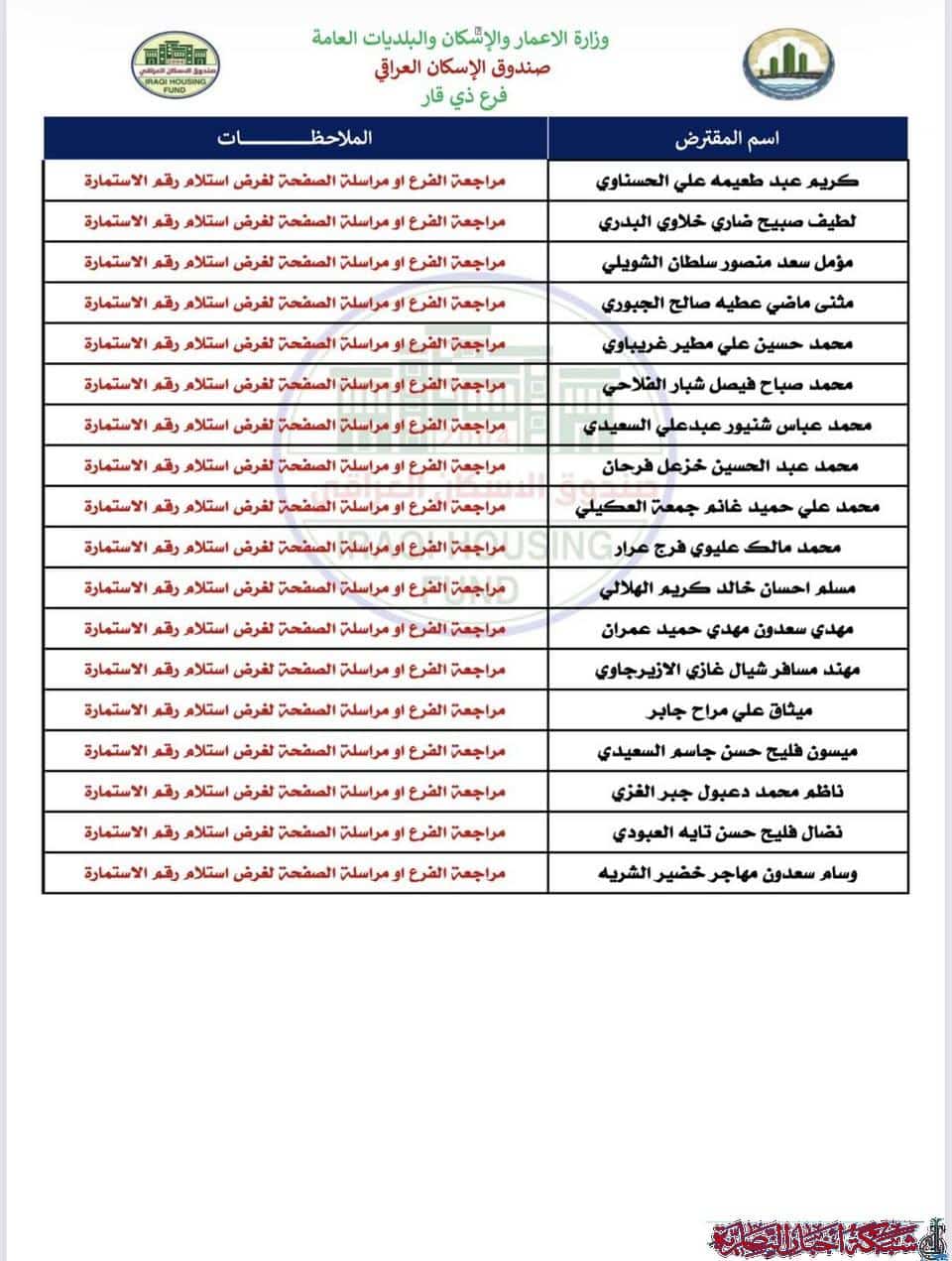 بالاسماء: صندوق إسكان ذي قار يدعو المقترضين لإكمال الإجراءات القانونية والمرحلة الثانية من معاملات القروض