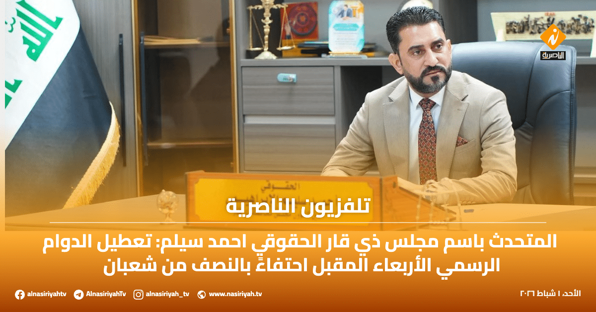 تلفزيون الناصرية: تعطيل الدوام الرسمي الأربعاء المقبل في ذي قار احتفاءً بذكرى النصف من شعبان