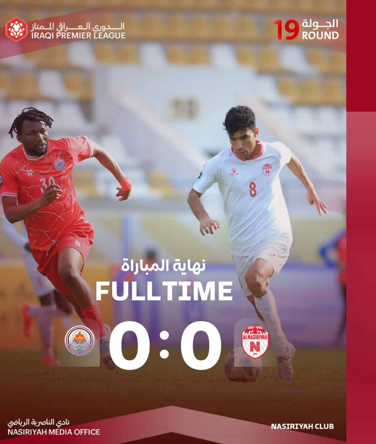 شبكة أخبار الناصرية:انتهت مباراة ناديي الناصرية والجيش بالتعادل السلبي دون أهداف ضمن منافسات الجولة التاسعة عشرة من الدوري العراقي الممتاز.…
