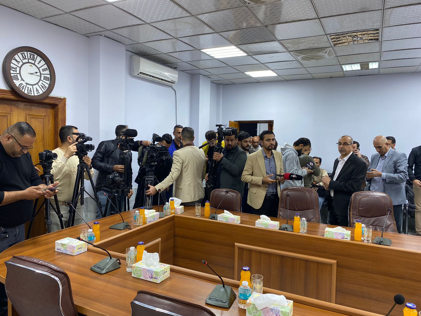 بالصور: الاعلاميون يبدؤون بالتوافد لقاعة اجتماعات مجلس المحافظة