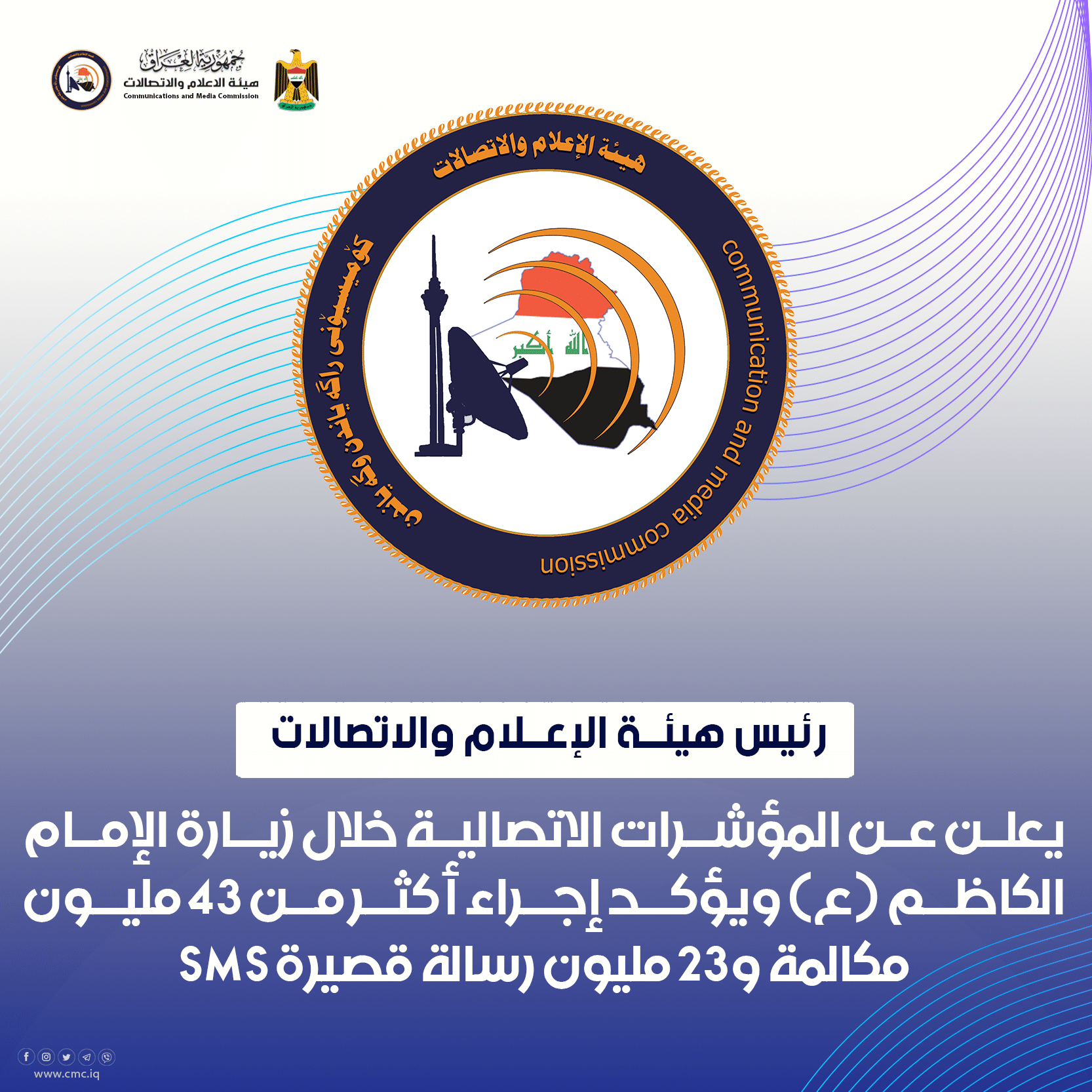 اعلنت هيئة الاعلام والاتصالات في العراق عن المؤشرات الاحصائية خلال زيارة الامام الكاظم عليه السلام واكدت التالي: