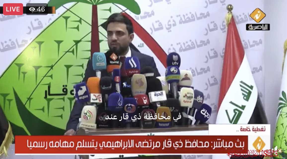 تلفزيون الناصرية في بث مباشر لاستلام محافظ ذي قار مرتضى الابراهيمي مهامه رسميا