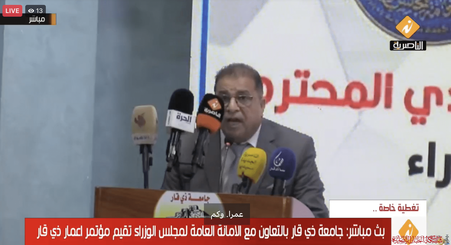 بث مباشر: جامعة ذي قار بالتعاون مع الامانة العامة لمجلس الوزراء تقيم مؤتمر اعمار ذي قار