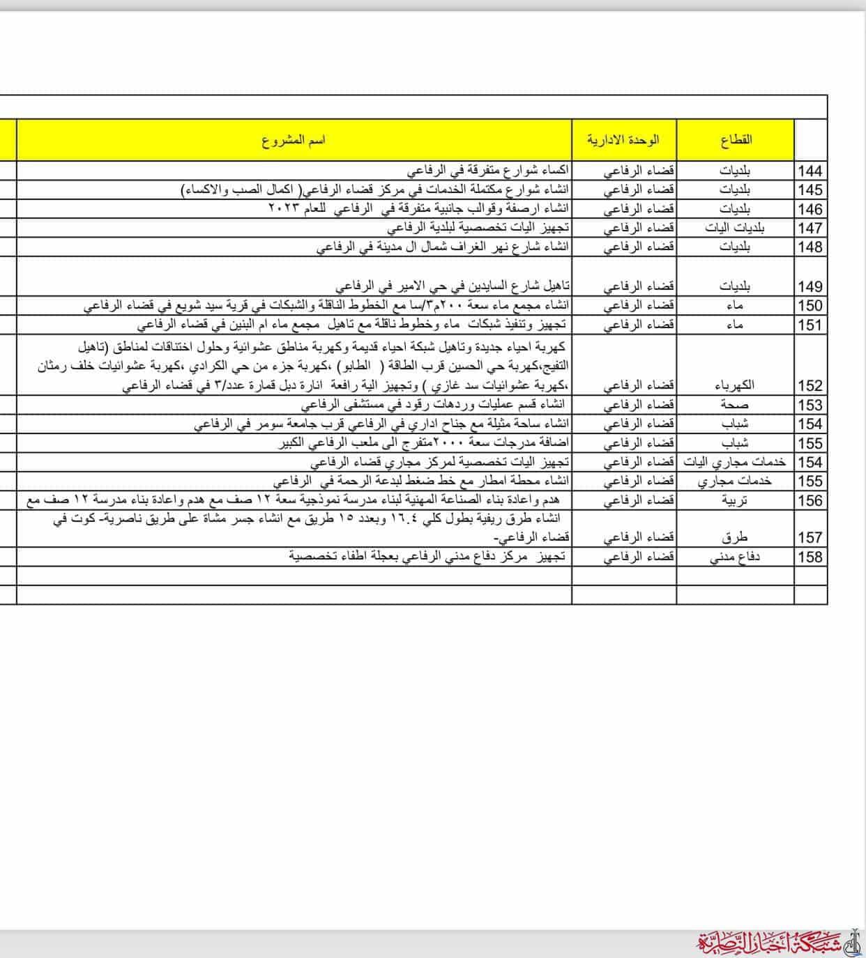 اعلنت حكومة الرفاعي المحلية عن احالة مشاريع خدمية وبنى تحتية ضمن موازنة عام 2023 سيجري تنفيذها في القضاء.