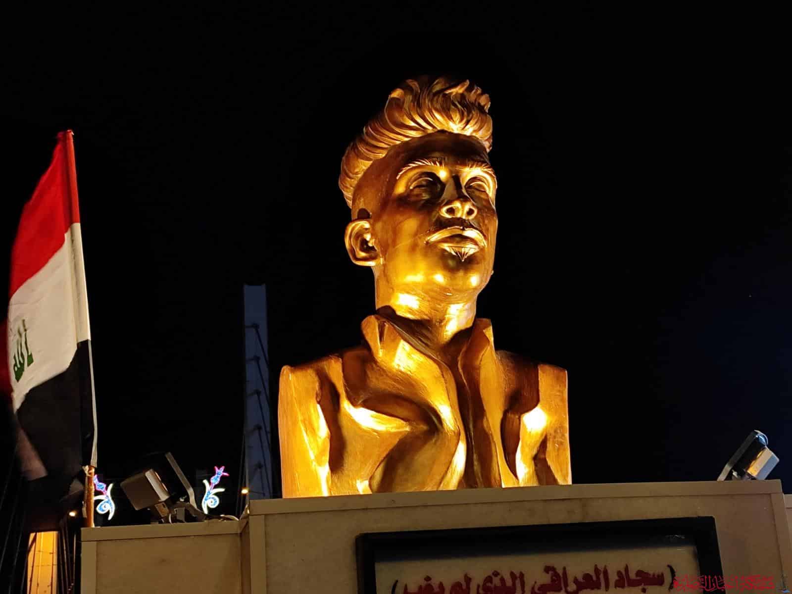 افتتح اليوم في فلكة الحضارات وسط الناصرية نصب مجسم للمتظاهر المغيب سجاد العراقي.