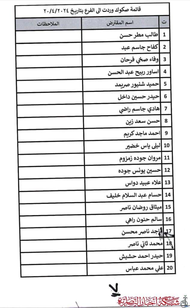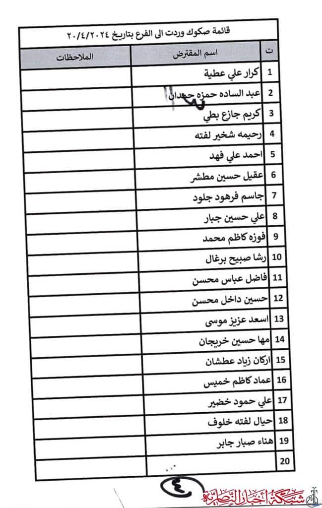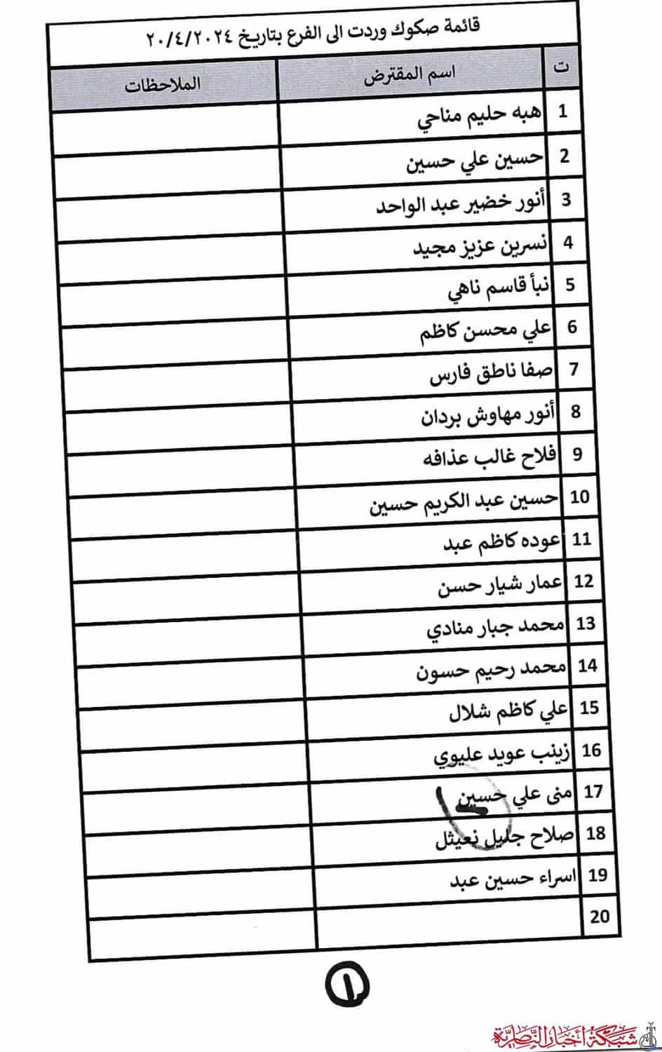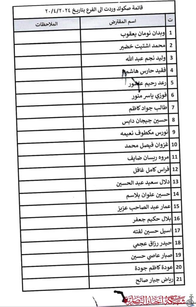 وقال الصندوق في بيان حصلت شبكة اخبار الناصرية على نسخة منه انه سيجري صرف الصكوك حسب المواعيد المحددة في القوائم التالية: