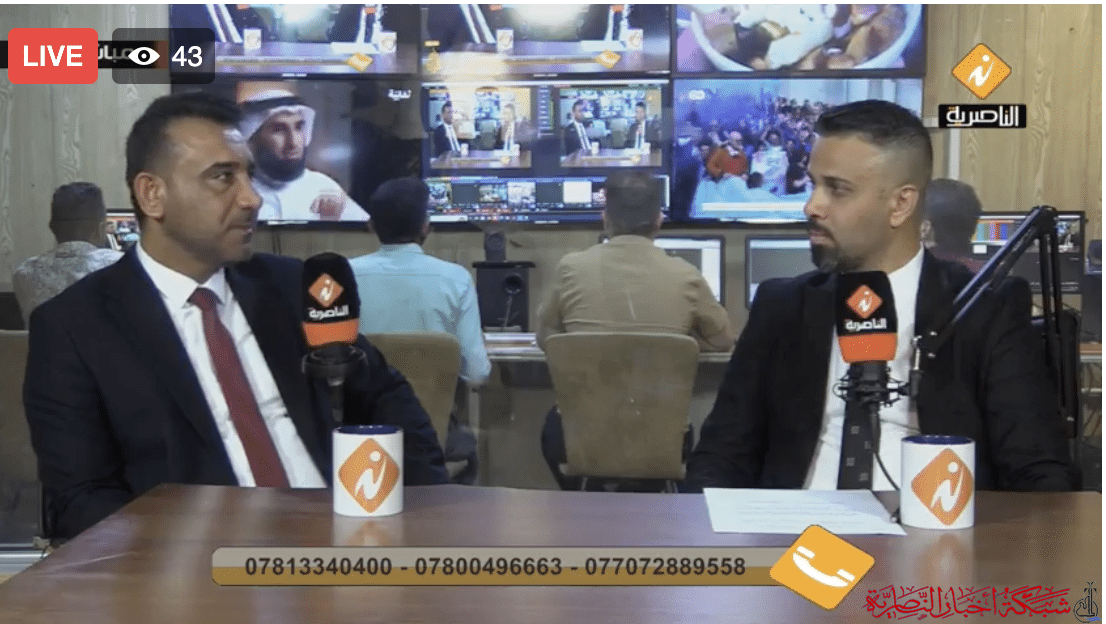 رئيس مجلس محافطة ذي قار عبد الباقي العمري في بث مباشر عبر اثير اذاعة وتلفزيون الناصرية
