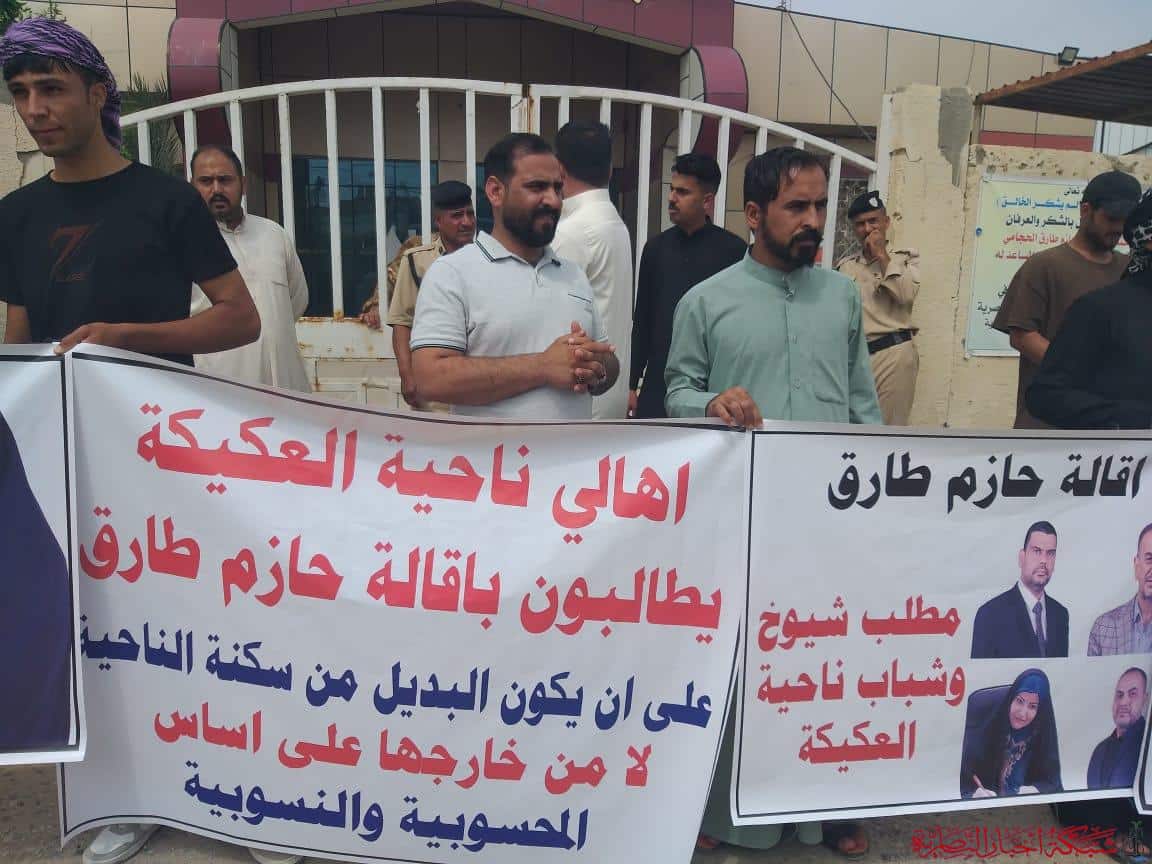 تظاهر عدد من مواطني ناحية العكيكة، اليوم الخميس، أمام مبنى إدارة الناحية، للمطالبة بإقالة مدير الناحية وتحسين الخدمات.