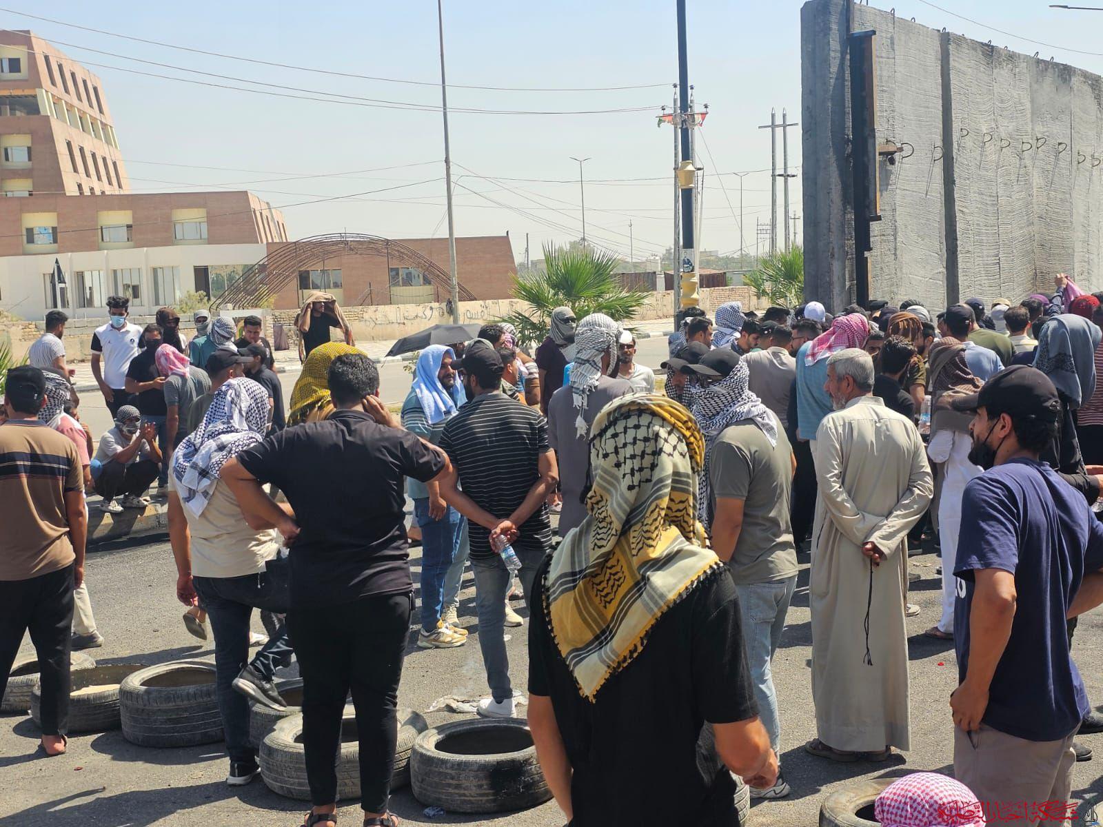 بالصور: عشرات المحتجين من “الخريجين“ يتظاهرون ويقطعون طريق الامام علي وسط الناصرية
