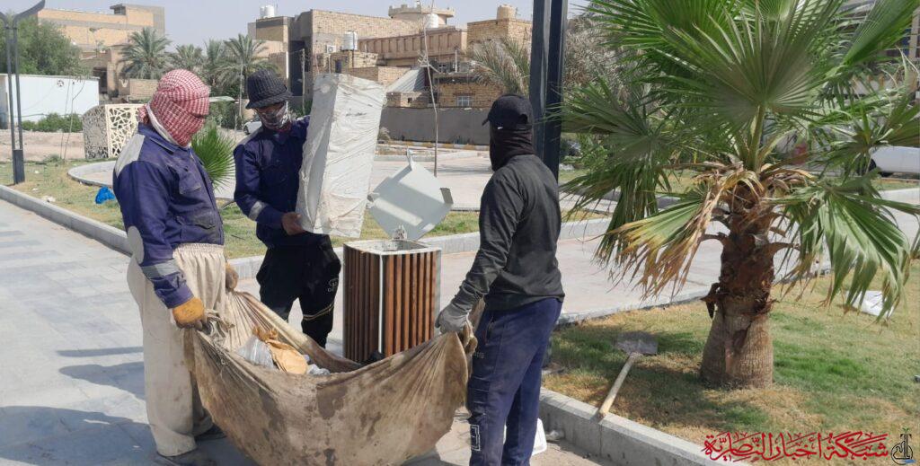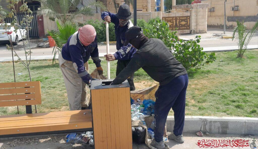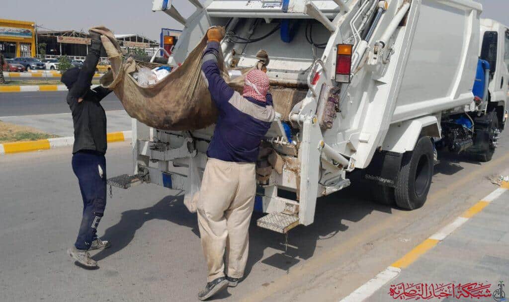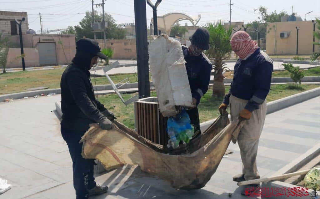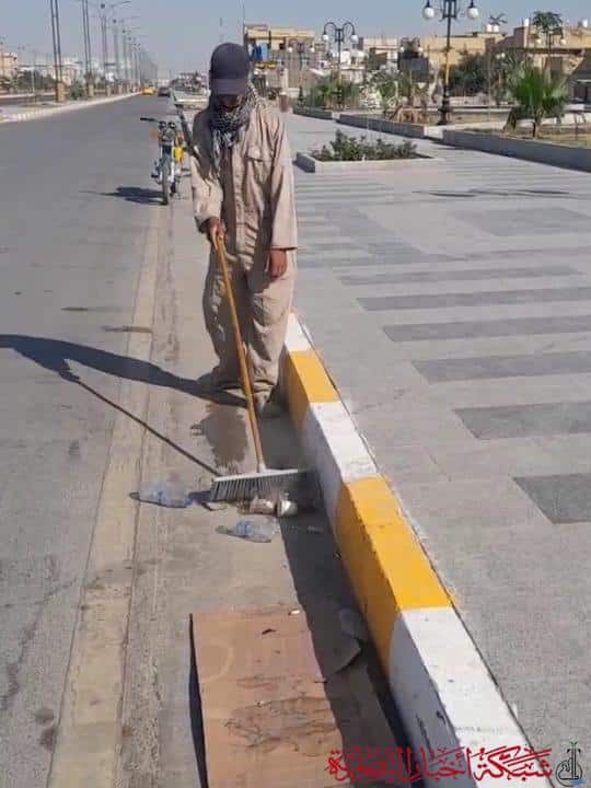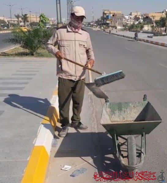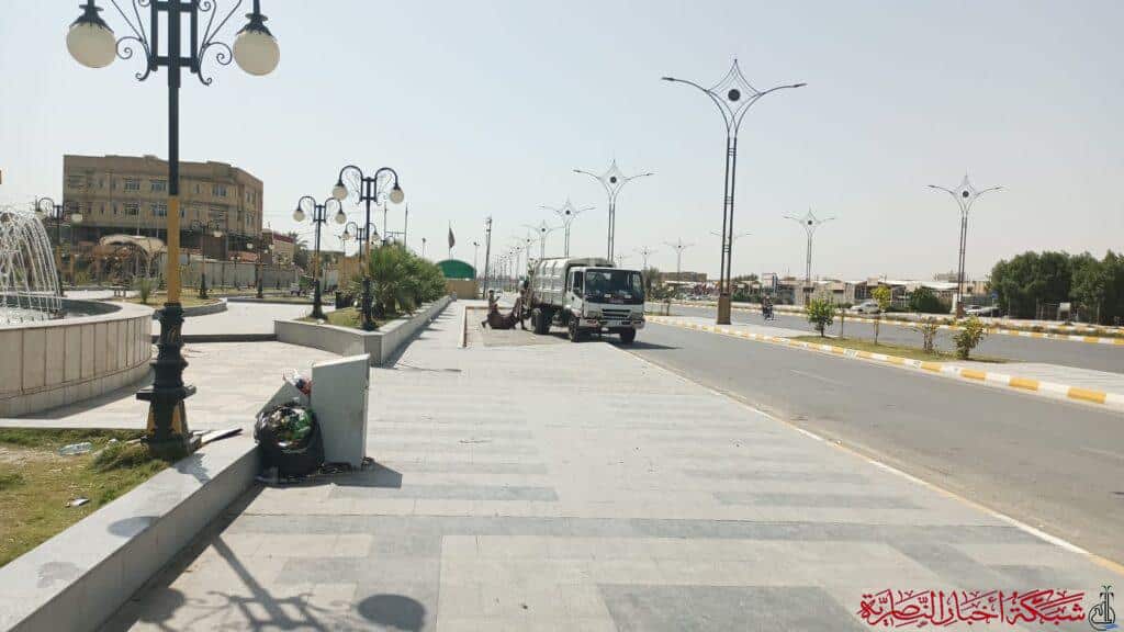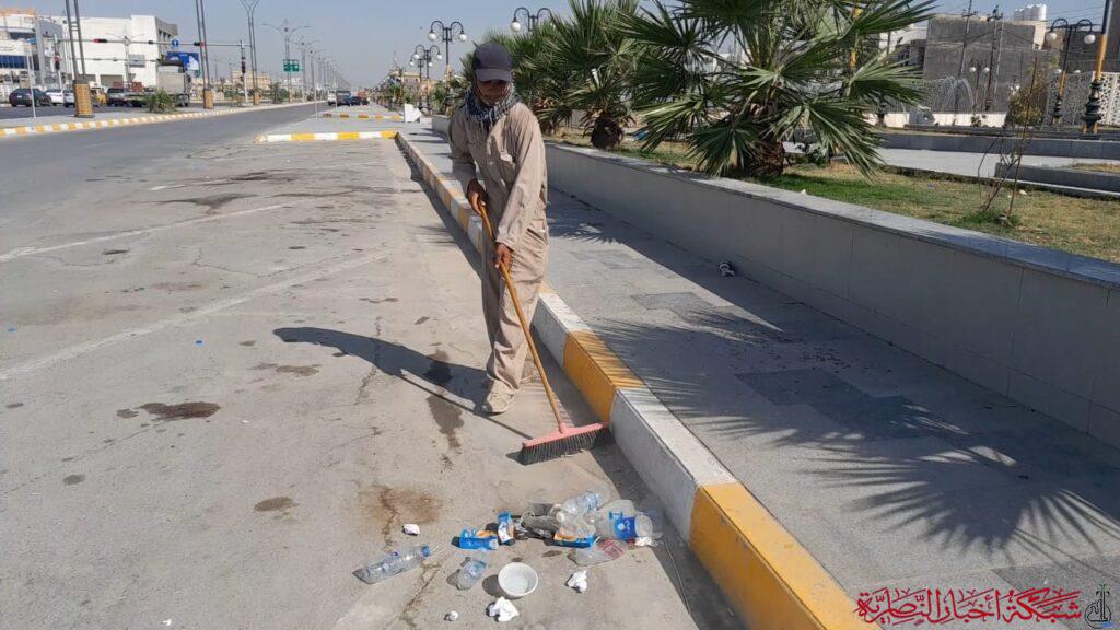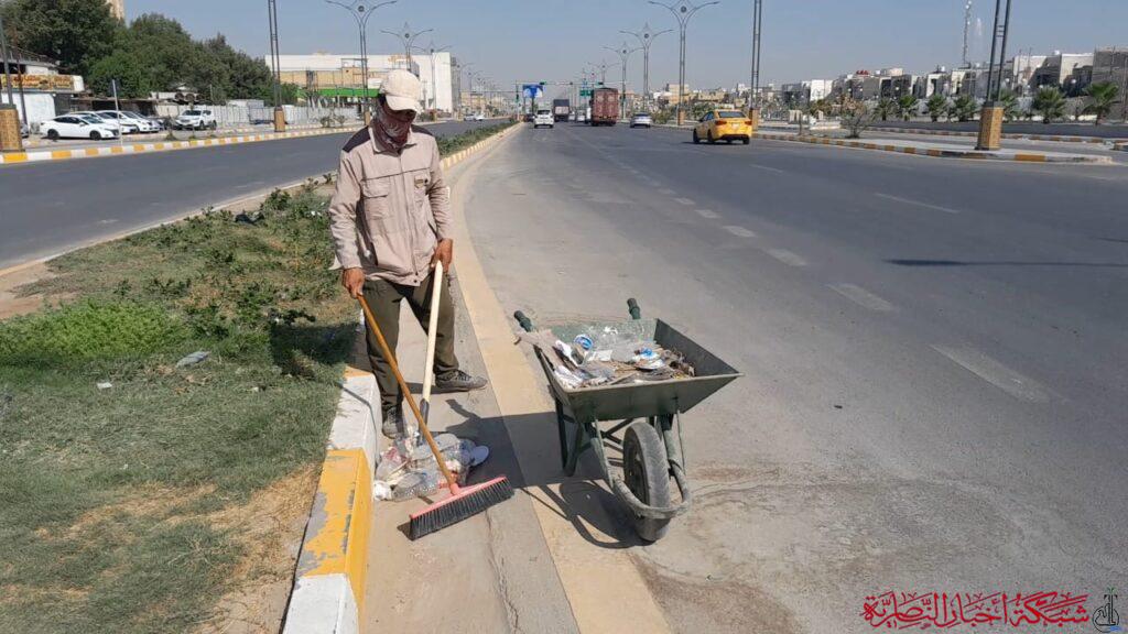 بالصور: عمال النظافة في الناصرية يتحدون حرارة العيد القياسية لتنظيف طريق يا حسين