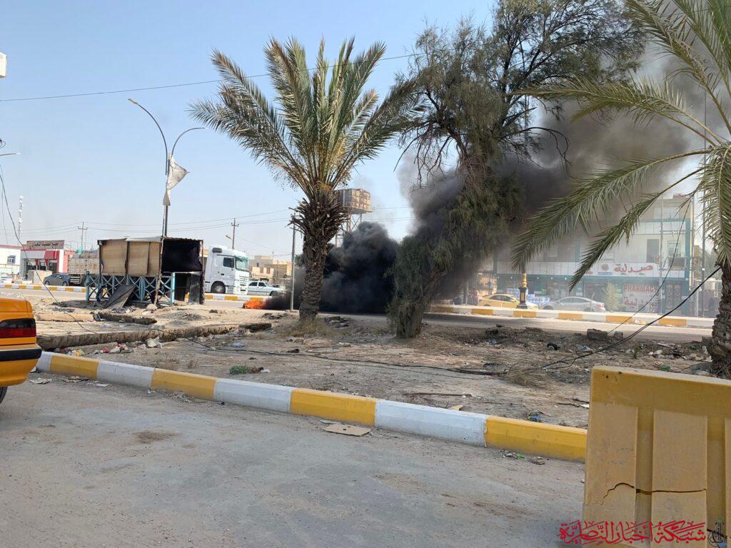بالصور: محتجون يقطعون الشارع الرئيسي في ناحية الفضلية