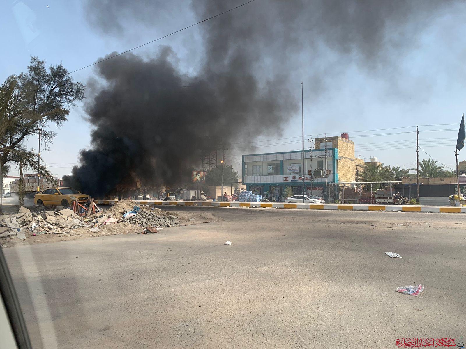 بالصور: محتجون يقطعون الشارع الرئيسي في ناحية الفضلية
