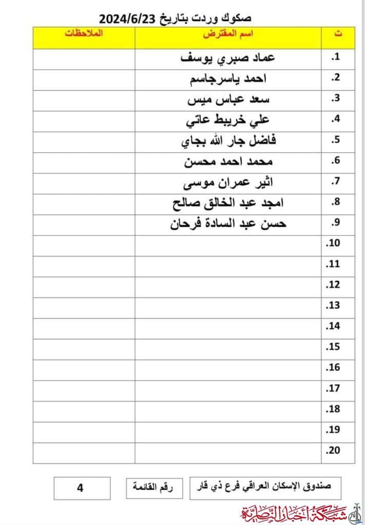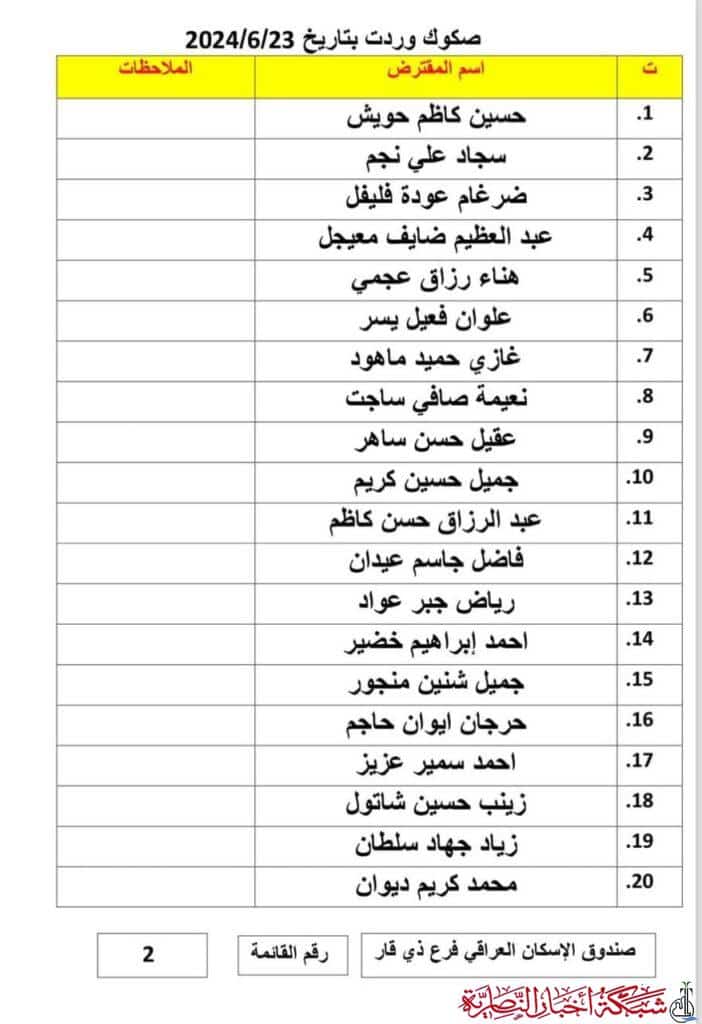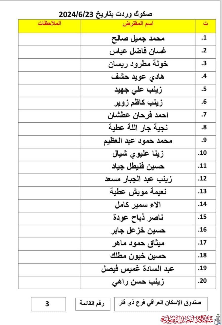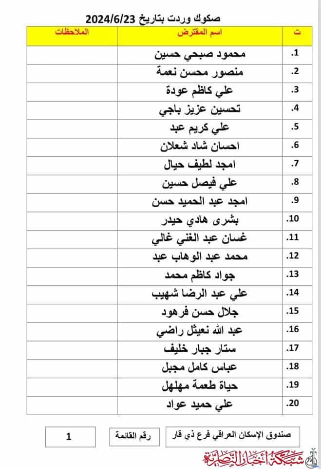 أعلن صندوق إسكان ذي قار عن وصول دفعة جديدة من صكوك قروض الإسكان، تتضمن 69 صكاً مصرفياً، لمواطنين في المحافظة.