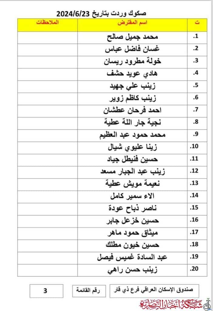 أعلن صندوق إسكان ذي قار عن وصول دفعة جديدة من صكوك قروض الإسكان، تتضمن 69 صكاً مصرفياً، لمواطنين في المحافظة.