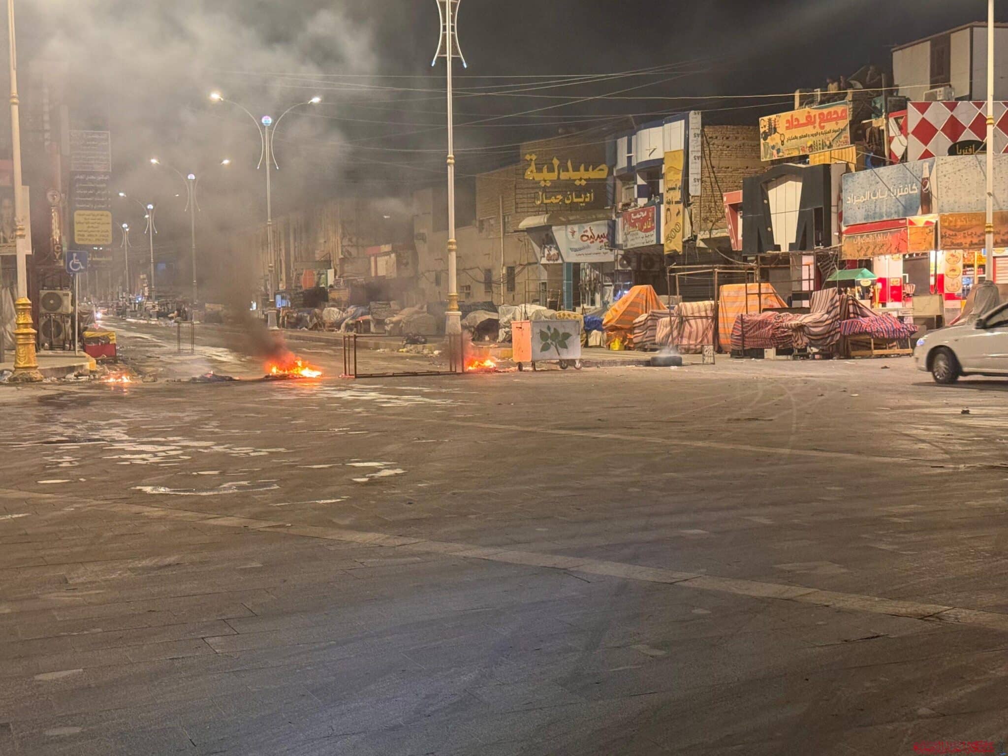 بالصور: تجدد الاحتجاجات المسائية إثر نشاط للبلدية في شارع النيل وسط الناصرية