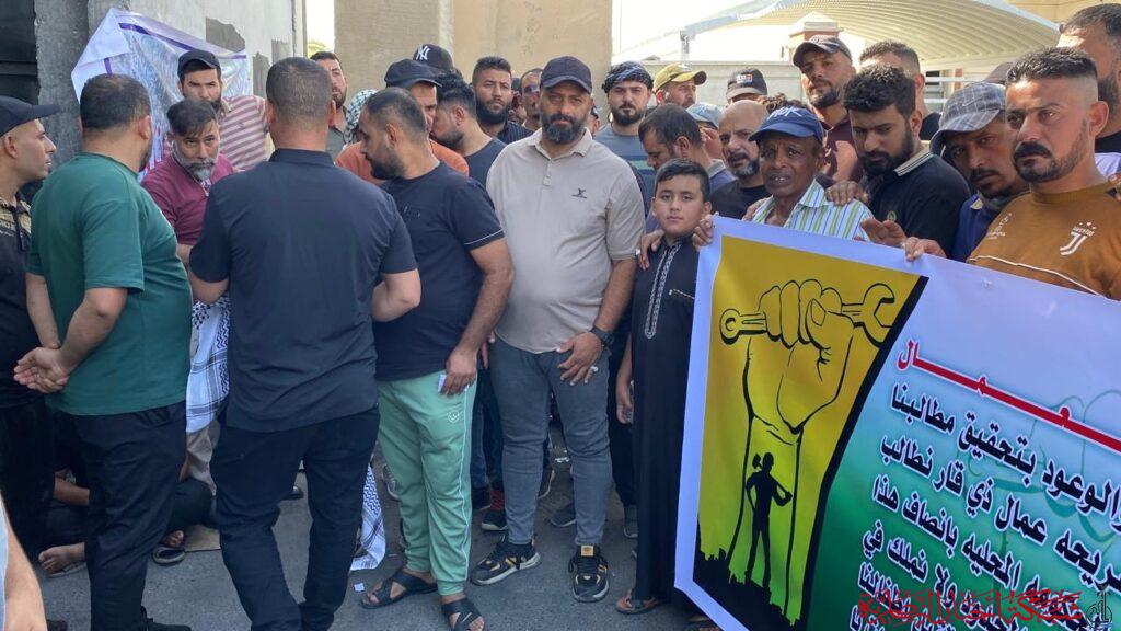 تظاهر العشرات من أعضاء نقابات العمال أمام مبنى ديوان محافظة ذي قار اليوم، مطالبين بتحقيق مطالبهم المشروعة بعد الوعود المتكررة بتسويفها.