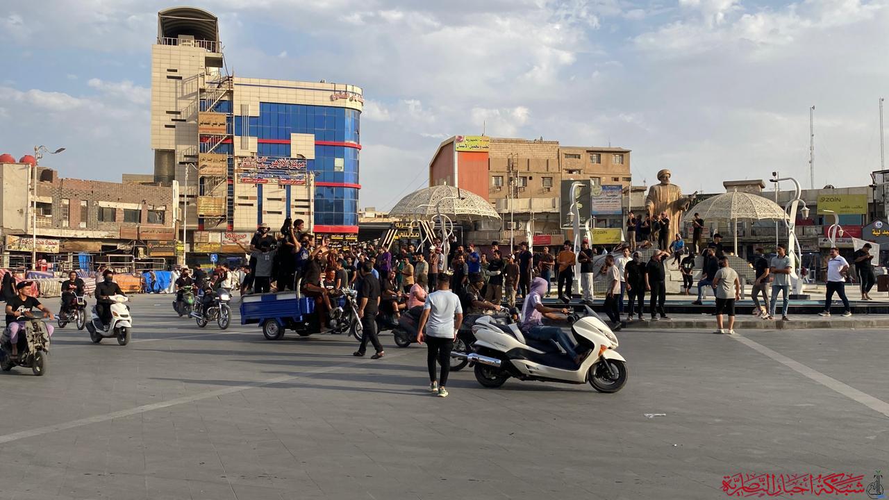 بالصور: تجمع عدد من المحتجين في شارع الحبوبي وسط الناصرية