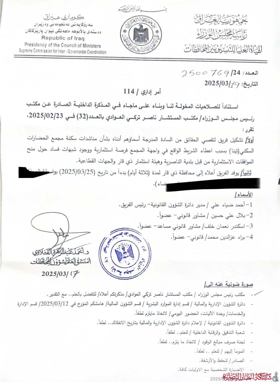 وفي تصريح خاص لشبكة أخبار الناصرية، أوضح تركي أن الحكومة المركزية تتابع عن كثب جميع ملفات الأراضي العامة في محافظة ذي قار، مؤكداً أن قرار إيقاف التجريف جاء بهدف فسح المجال أمام اللجنة التدقيقية لاستكمال عملها بشأن شرعية الإجراءات ومدى مطابقتها للضوابط القانونية.