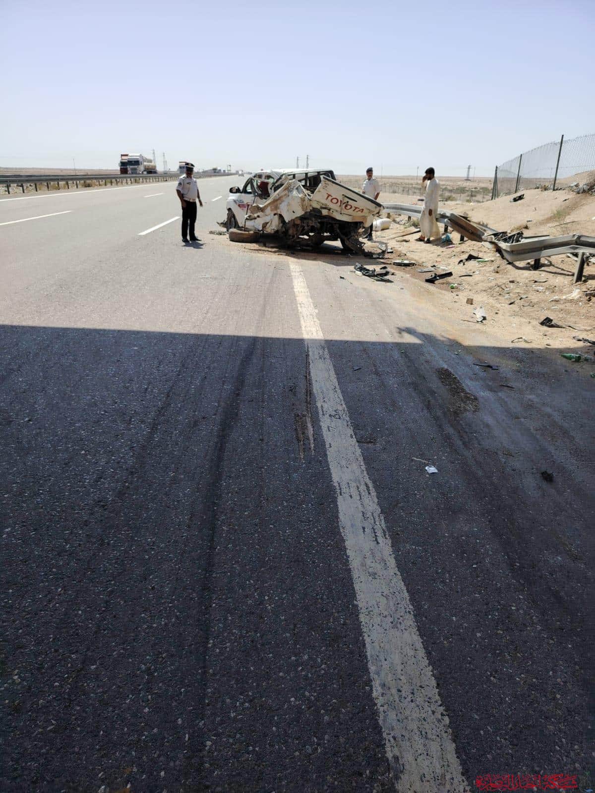 وقال المصدر لشبكة أخبار الناصرية، إن الحادث نجم عن اصطدام مركبة صهريج خرجت من ممرها المخصص إلى الممر الاضطراري حيث كانت مركبة من نوع تويوتا متوقفة، ما أدى إلى وقوع التصادم.