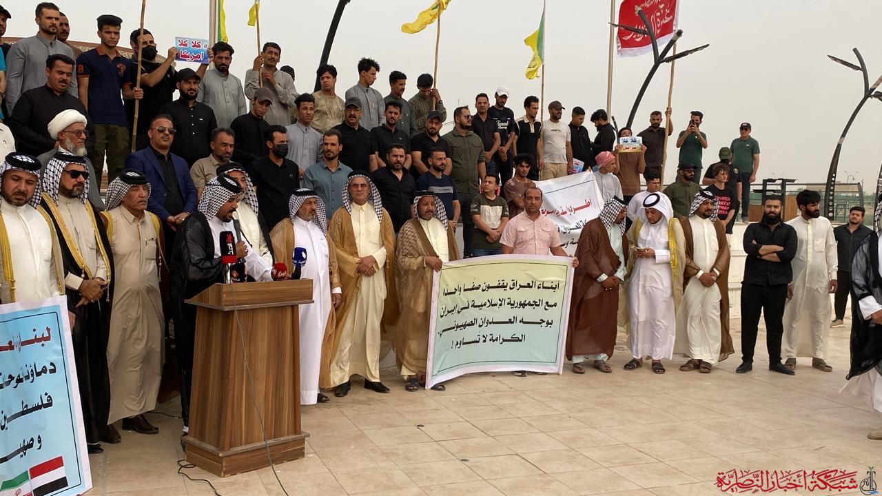وقال احد المشاركين احمد سالم لشبكة اخبار الناصرية ، اليوم هذه الوقفة رسالة واضحة من أبناء ذي قار لكل العالم اننا أبناء المعسكر هيئات منا الذلة ، اليوم هناك رسالة من المرجعية العليا في النجف بان الاعتداء على ايران.