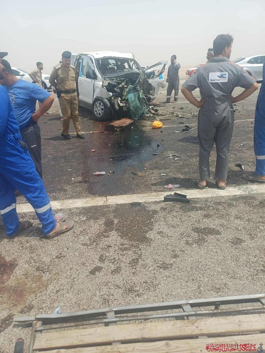 شهد طريق تل اللحم، الرابط بين محافظتي ذي قار والبصرة، ظهر اليوم حادث سير دموي بين شاحنة نقل كبيرة من نوع “تريلا” وباص صغير “ستاركس”، أسفر عن مصرع 3 أشخاص وإصابة 5 آخرين بجروح متفاوتة.