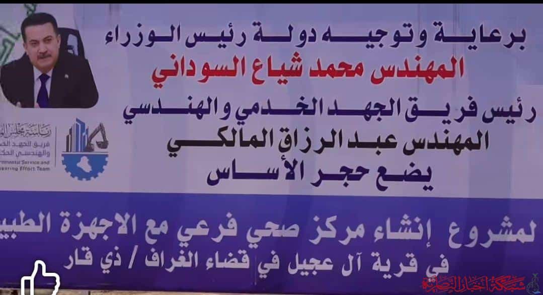 أعلن مسؤول فريق الجهد الخدمي والهندسي في محافظة ذي قار، الدكتور مهند محمد ماجد، أن الأعمال في مشروع إنشاء المركز الصحي بقرية آل عجيل شمال مدينة الناصرية وصلت إلى نسبة إنجاز بلغت 90%.