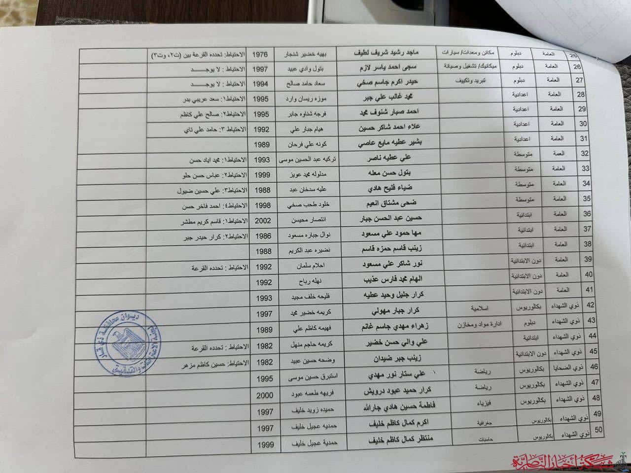 أعلن مكتب المعاون الإداري لمحافظ ذي قار عن صدور قوائم الفائزين بالتعيين ضمن عقود المفاضلة (9577) في ناحية بني زيد.