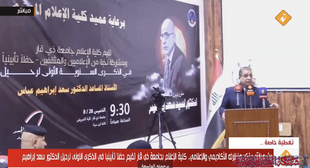 بالفيديو: كلية الإعلام بجامعة ذي قار تقيم حفلا تأبينيا في الذكرى الاولى لرحيل الدكتور سعد إبراهيم