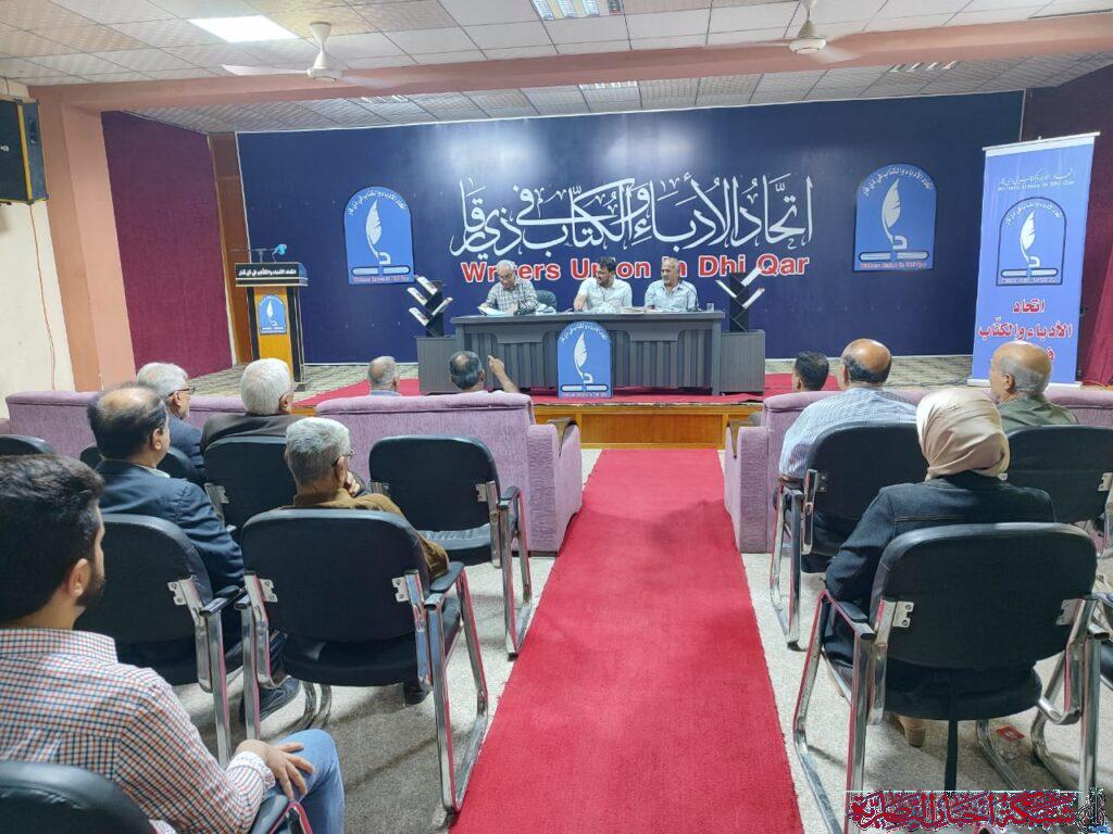 وقال رئيس الاتحاد علي الشيال لشبكة اخبار الناصرية” أن هذه الأمسية تأتي ضمن الموسم الثقافي للاحتفاء بالمبدعين ونتاجاتهم الأدبية من أجل إبقاء مدينة الناصرية فناء للثقافة والمعرفة”.