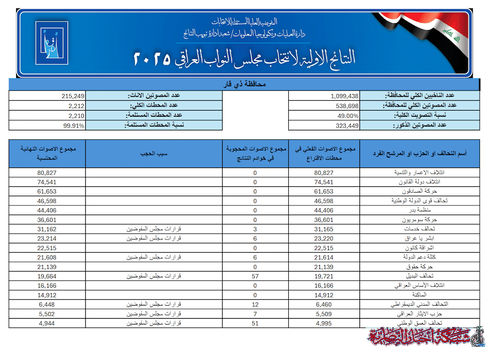 اذاعة الناصرية تنشر عدد الاصوات التي حصلت عليها القوائم المتنافسة في ذي قار