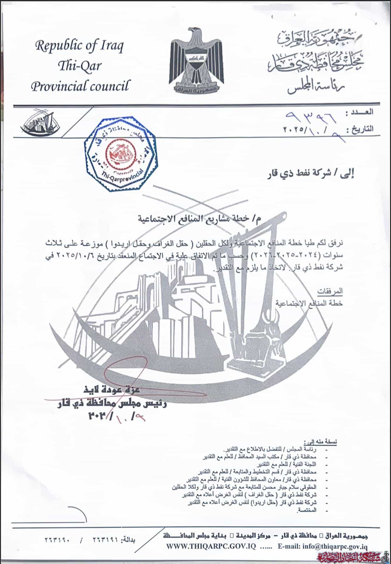 كشف معاون محافظ ذي قار لشؤون التخطيط، رزاق العلي، عن تفاصيل خطة المنافع الاجتماعية في المحافظة لثلاثة اعوام وانه تم المصادقة عليها في تشرين الاول 2025.