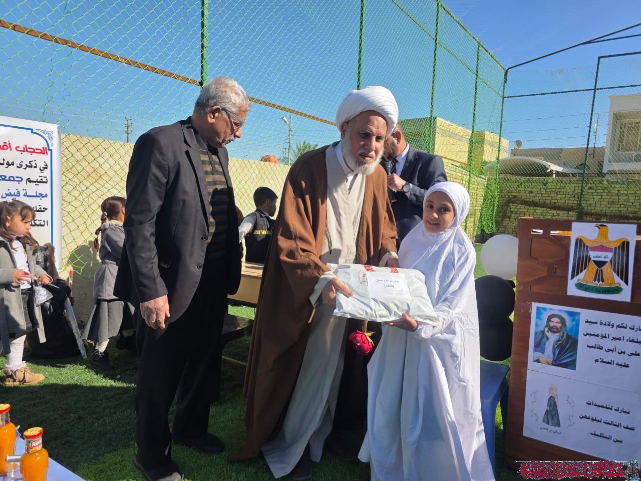واستُهل الحفل بتلاوة مباركة من آيات الذكر الحكيم، أعقبتها كلمات وأناشيد عبّرت عن عظمة المناسبة ومكانة صاحب الذكرى، وألقى سماحة الشيخ الناصري كلمة تناول فيها الأبعاد التربوية والمعنوية لتكريم الفتيات المكلفات والطلبة المتفوقين، مستلهماً من سيرة الإمام علي عليه السلام قيم الرعاية والاحتواء، ومؤكداً أن الحجاب يمثل رمزاً للعفاف ومسؤولية أخلاقية ودينية في مسيرة الفتاة المؤمنة.