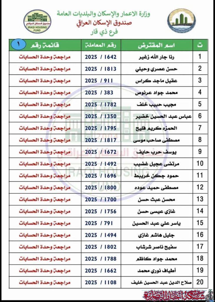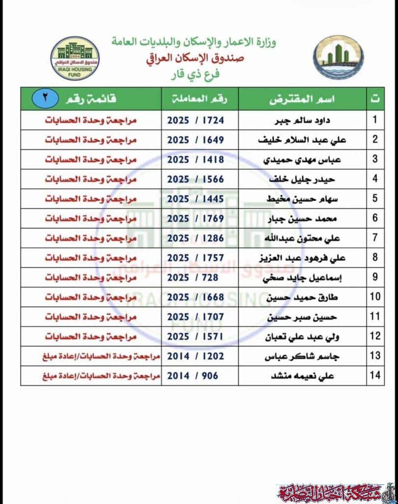 أعلن صندوق الإسكان في ذي قار عن وصول وجبة جديدة من صكوك قروض الإسكان للمستفيدين في المحافظة، وذلك بواقع 34 صكا مصرفيا.