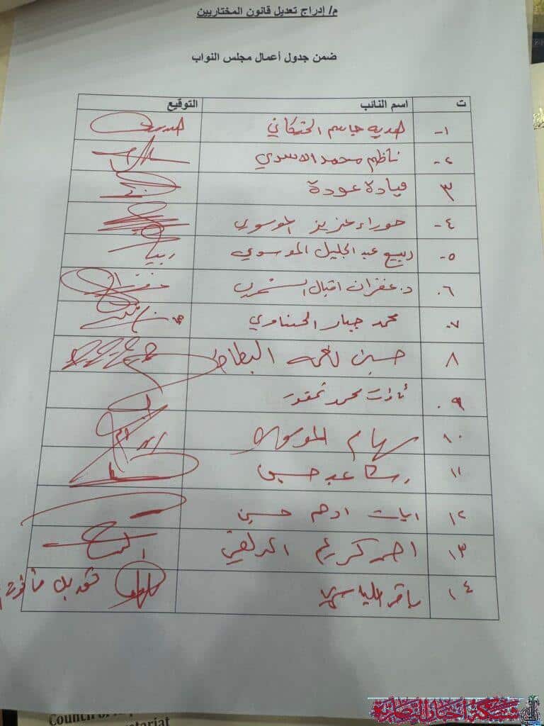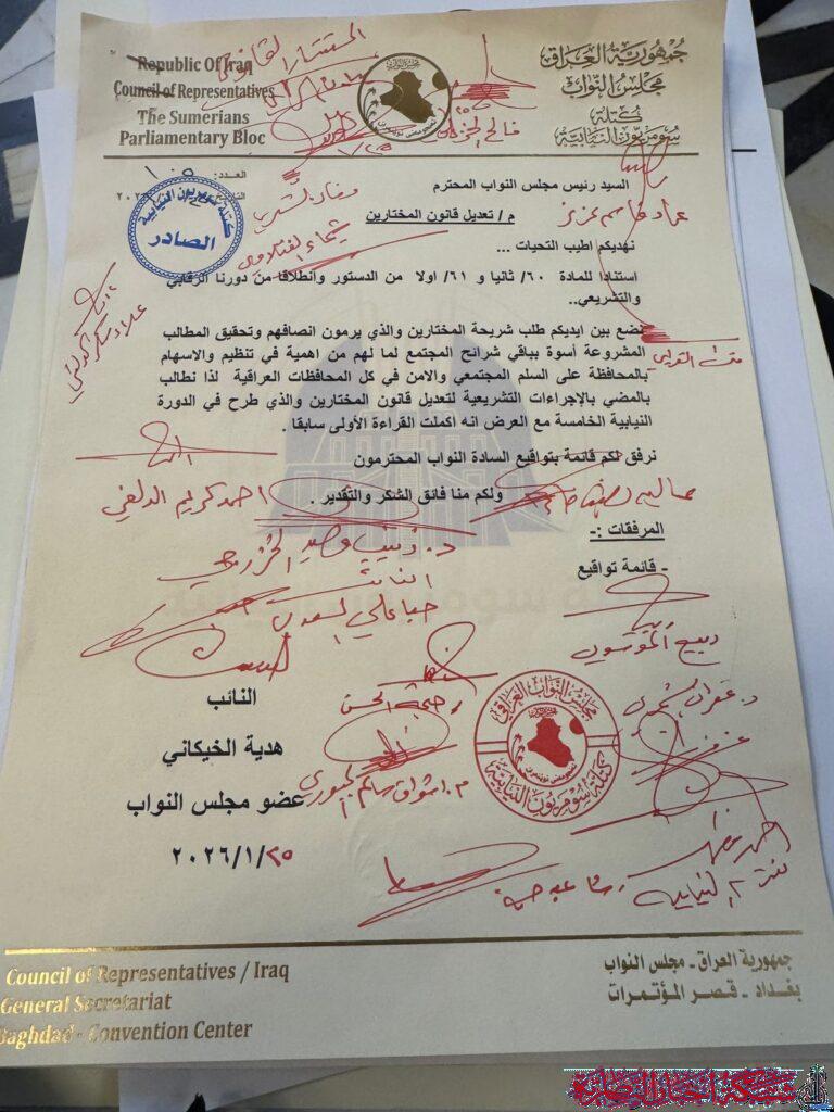 أعلنت عضو مجلس النواب العراقي، هدية الخيكاني، عن جمع تواقيع لتعديل قانون المختارين، بهدف إنصاف هذه الشريحة المهمة في المجتمع.