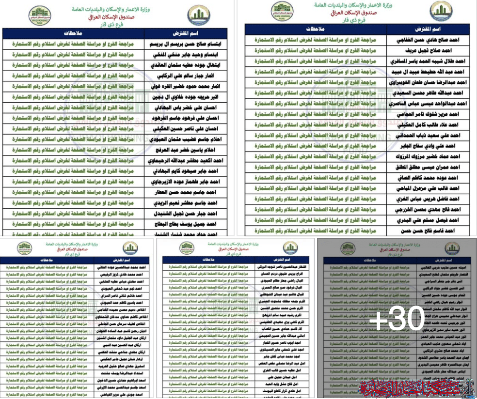 أعلن صندوق اسكان ذي قار عن إعادة نشر قائمة بأسماء المقترضين السابقين، مؤكدا على أهمية التواصل لاستلام أرقام الاستمارات.