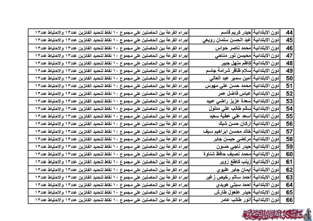 واوضحت اللجنة في بيان تابعته شبكة أخبار الناصرية، أن الدعوة تشمل الذوات المدرجة أسماؤهم ومعلوماتهم من المشمولين بدرجات المفاضلة في قضاء الغراف، لغرض إجراء قرعة المتساوين بالنقاط ضمن فئات دون الابتدائية والابتدائية والمتوسطة والاعدادية وحسب الاختصاصات المؤشرة.