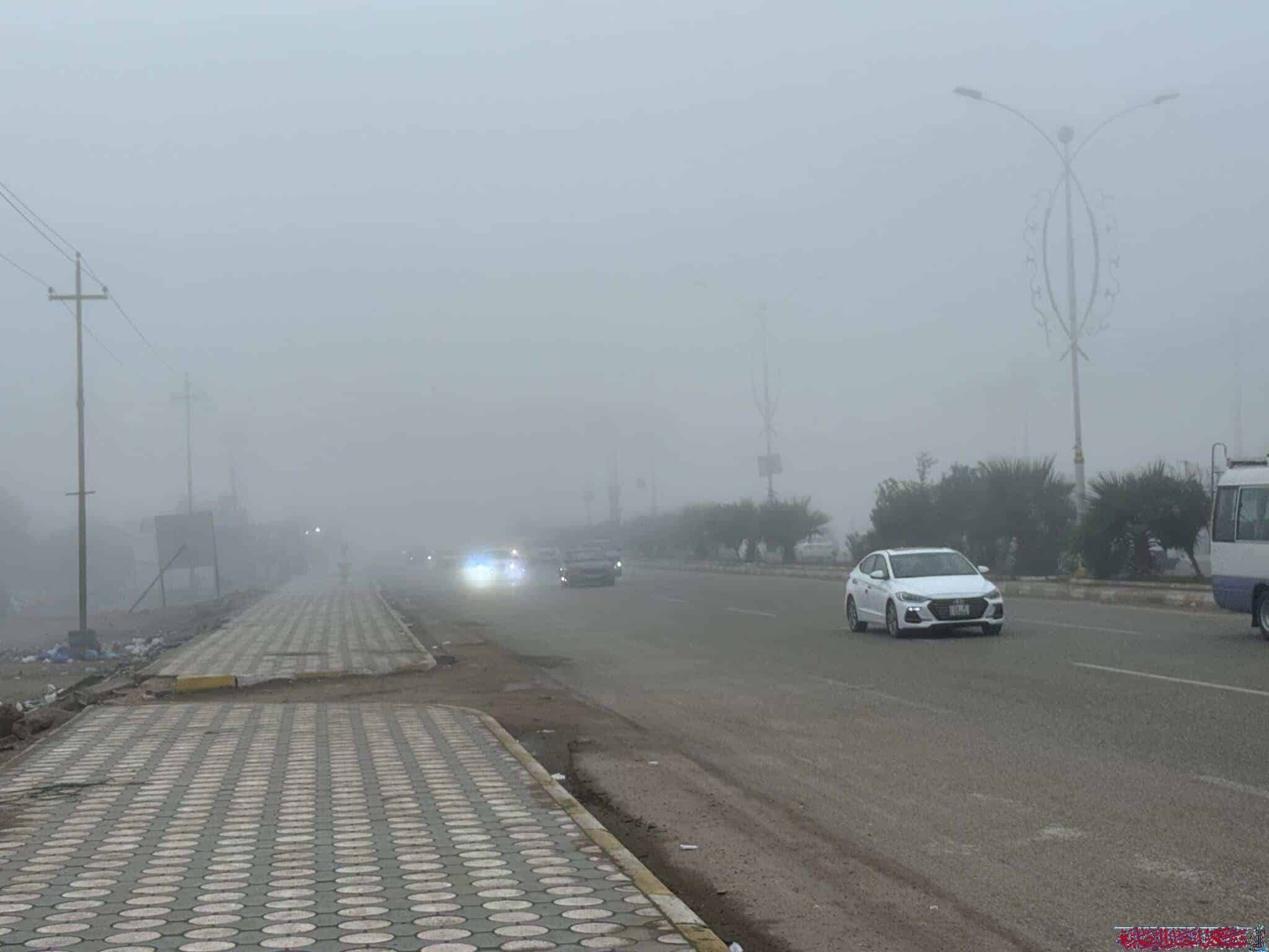 أعلن مدير الأنواء الجوية في الناصرية أحمد كريم أن محافظة ذي قار ستشهد ضبابا كثيفا فجر الغد نتيجة عوامل جوية محددة.