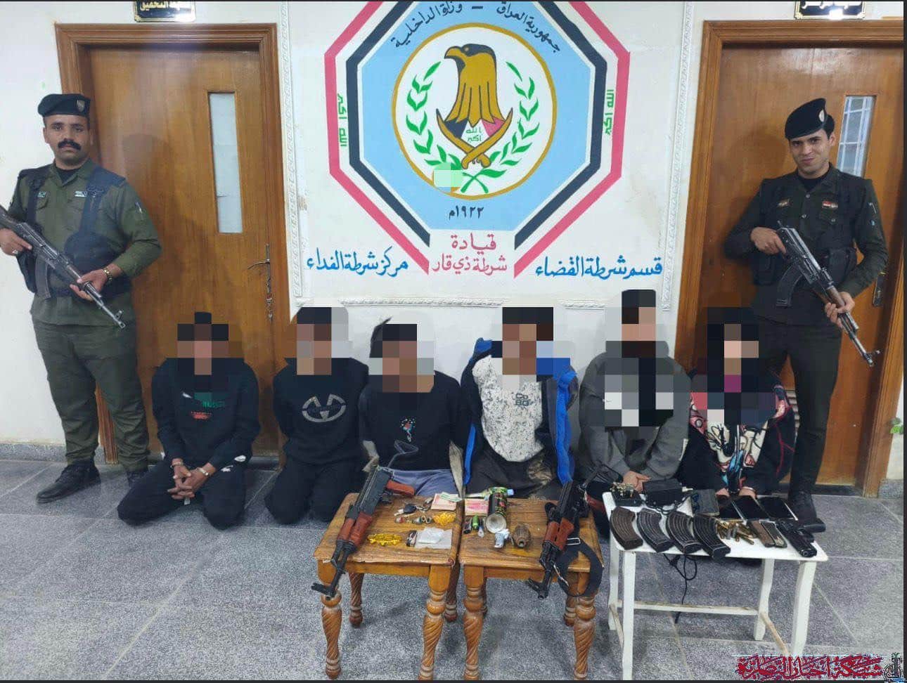 أعلنت شرطة ذي قار عن تنفيذ عملية نوعية أسفرت عن القبض على ستة متهمين وضبط أسلحة نارية ومواد مخدرة في إحدى مناطق المحافظة.
