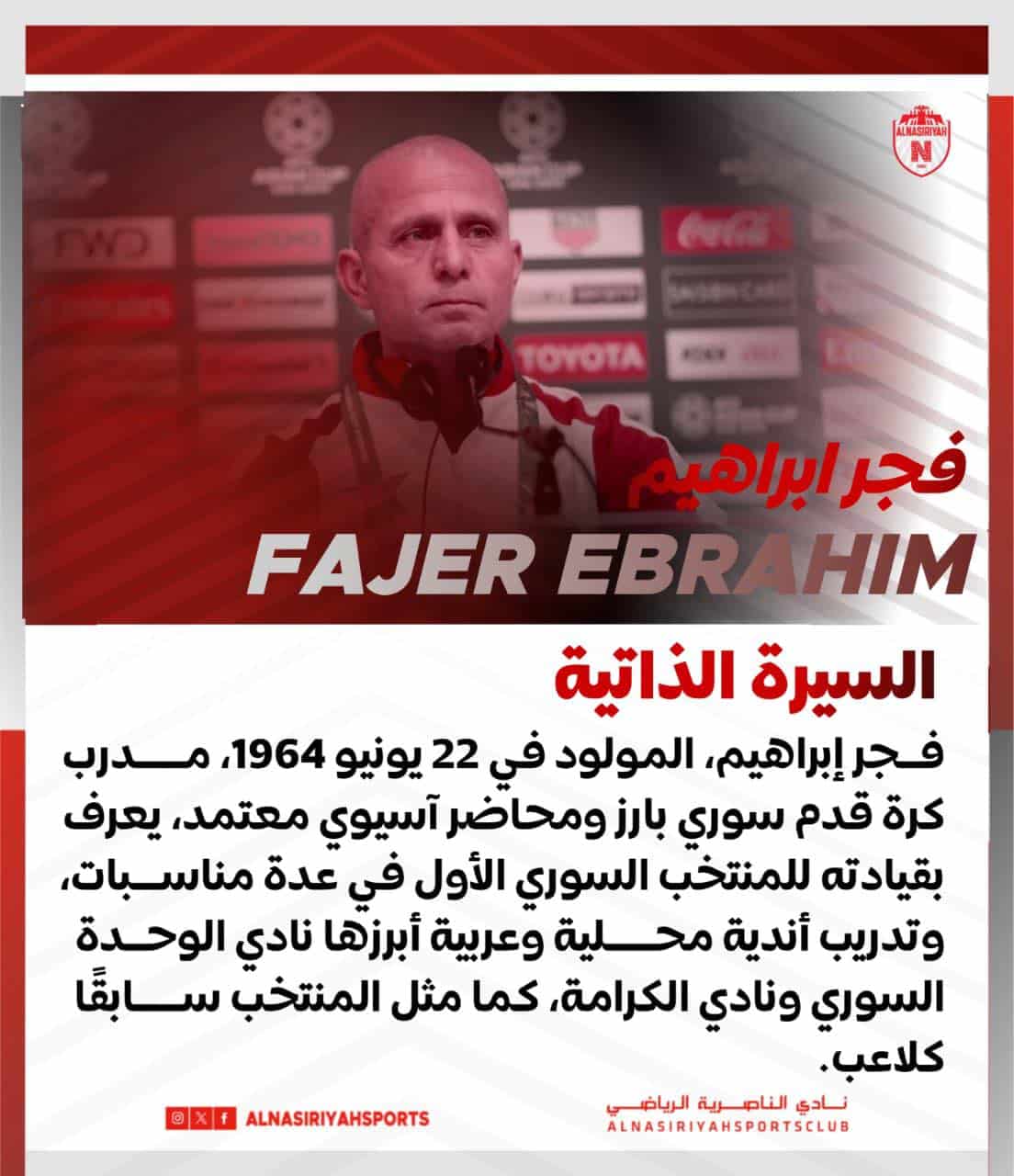 أعلنت الهيئة الإدارية المؤقتة لنادي الناصرية الرياضي عن إبرام عقد رسمي مع المدرب السوري فجر إبراهيم حامد، لقيادة الفريق خلال المرحلة المقبلة.