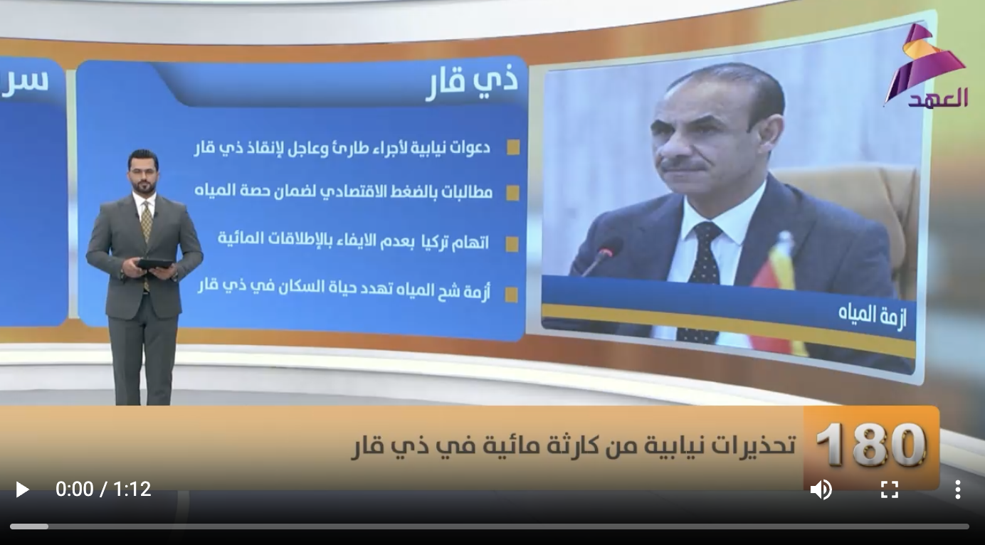 وقال الركابي، خلال لقاء بثته قناة العهد الفضائية، إن أزمة المياه لم تعد أزمة خدمية فحسب، بل تحولت إلى أزمة اجتماعية وإنسانية تدفع الأهالي إلى ترك أراضيهم ومصادر رزقهم، مشيراً إلى أن العراق يُعرف تاريخياً ببلد الرافدين وأرض السواد، وأن حصته المائية ليست منّة من أحد، بل حق ثابت بموجب القوانين والمعاهدات الدولية المتعلقة بالأنهار المشتركة.