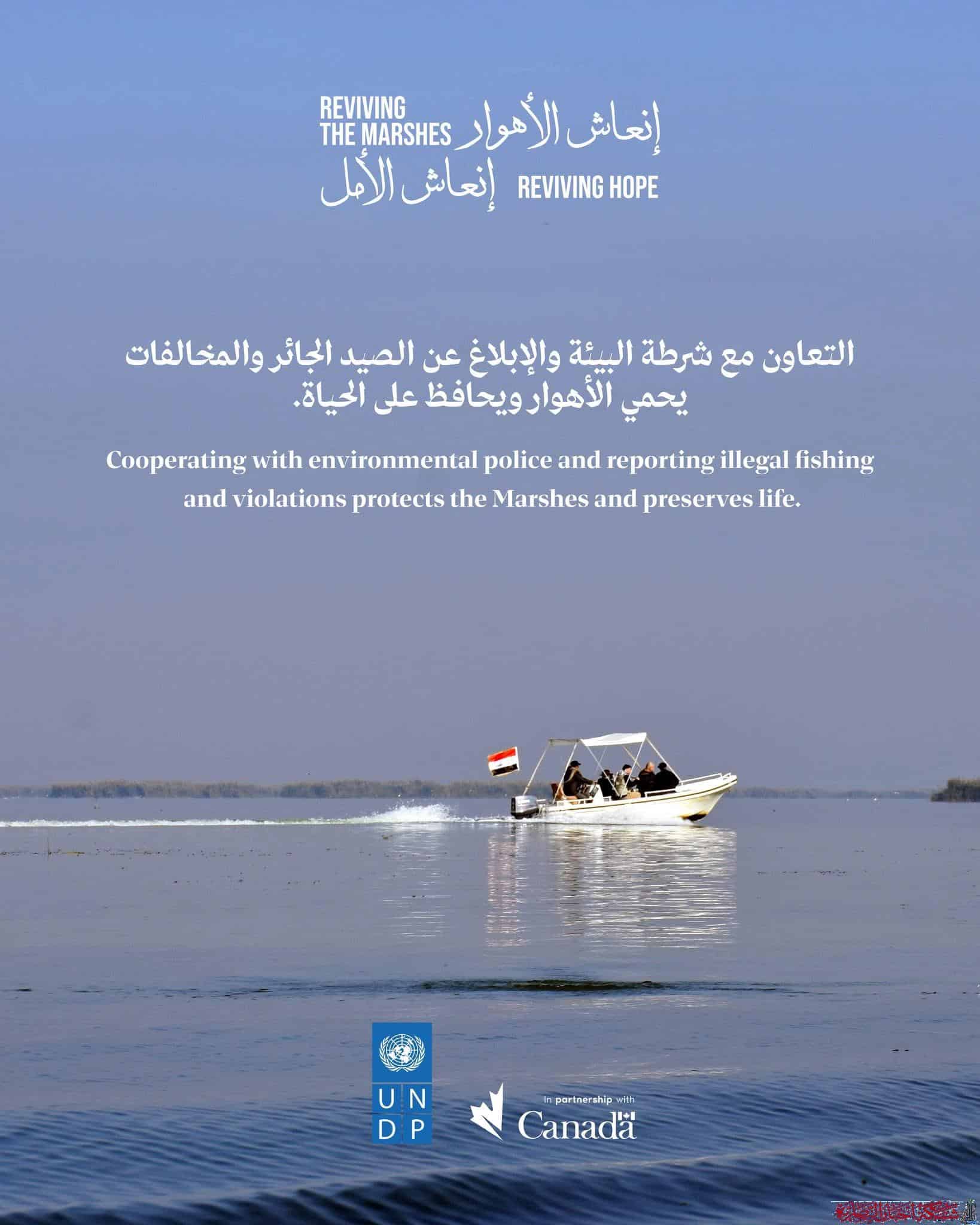 أكد برنامج الأمم المتحدة الإنمائي أهمية التعاون مع الشرطة البيئية للإبلاغ عن الصيد الجائر والمخالفات لحماية الأهوار.