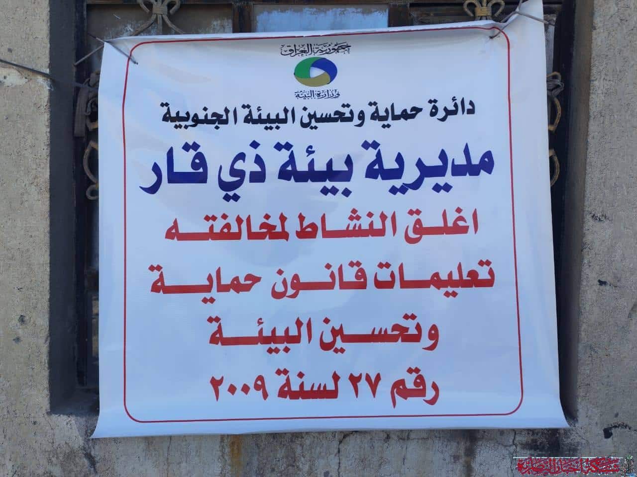 أعلنت مديرية بيئة محافظة ذي قار عن إجراء ميداني حازم تمثل بغلق نشاط صناعي في قضاء البطحاء بسبب مخالفته المعايير والضوابط البيئية.