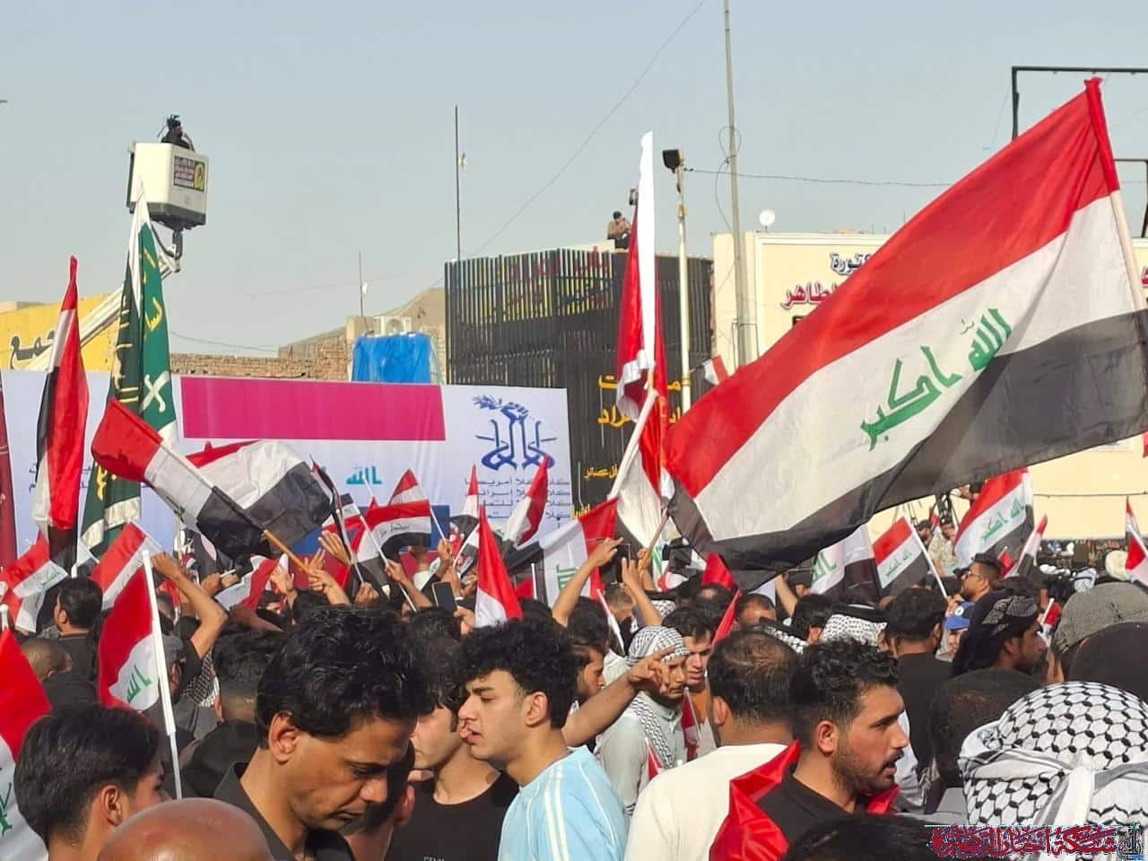 وخرج المتظاهرون في موكب جماهيري كبير في ساحة الحبوبي وسط الناصرية للتعبير عن استنكارهم للعدوان الامريكي الصهيوني على المنطقة مطالبين بإحلال السلام ووقف الاعتداءات المتكررة التي تستهدف العراق وشعوبه.