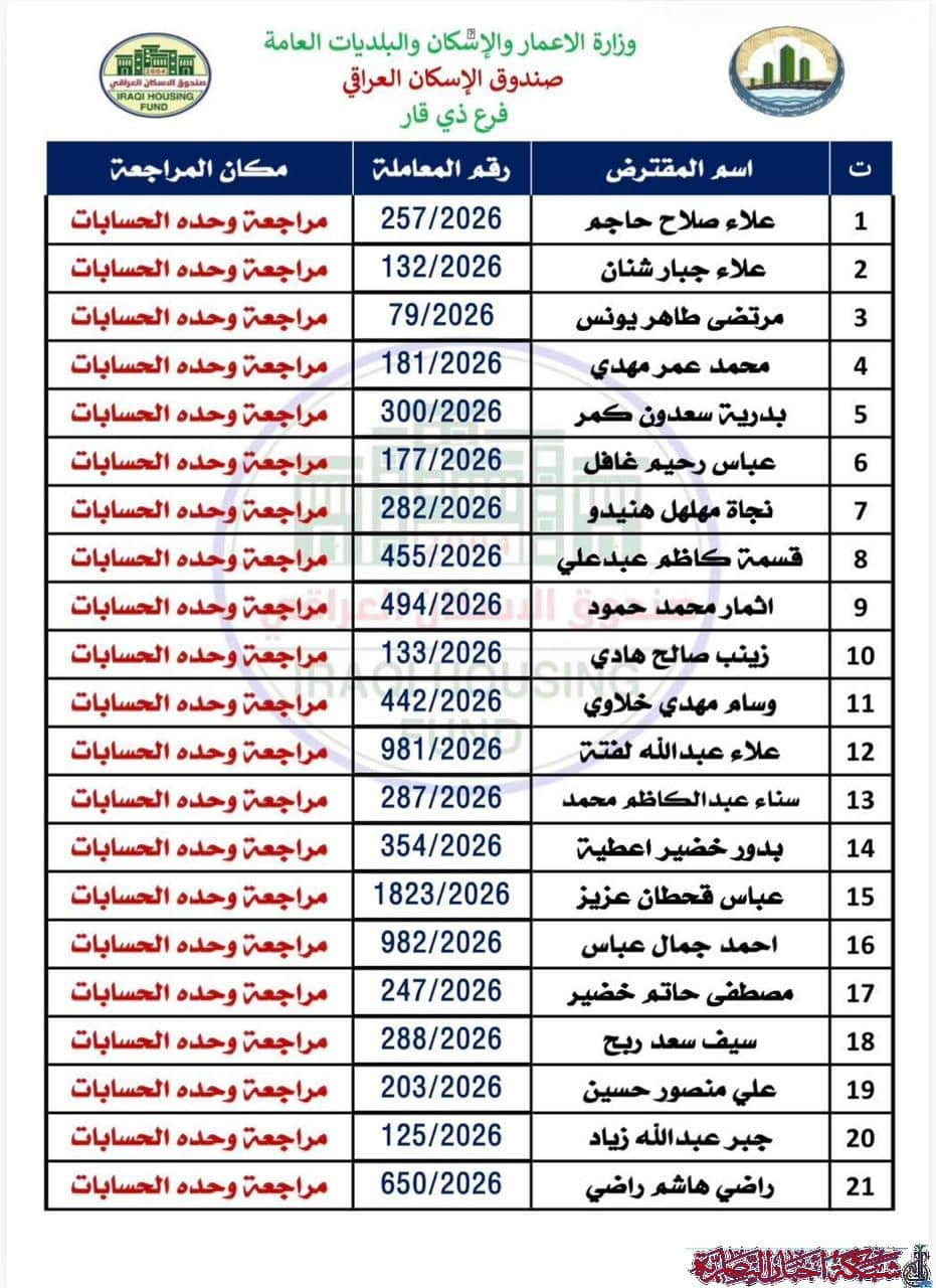 وأفاد بأن على المقترضين إحضار وصل أو كارت استلام المعاملة لمعرفة رقمها فيما يُلزم مقترضو الدفعة الثانية والثالثة بإبراز وصل تسديد لغاية شهر نيسان 2026.