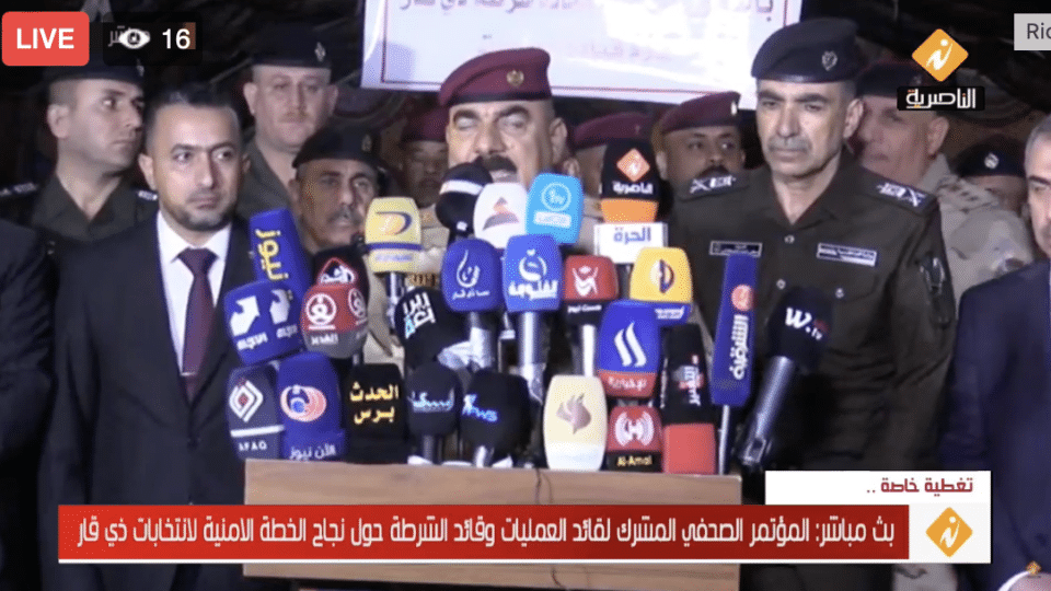 بث مباشر: المؤتمر الصحفي المشرك لقائد العمليات وقائد الشرطة حول نجاح الخطة الامنية لانتخابات ذي قار | شبكة اخبار الناصرية