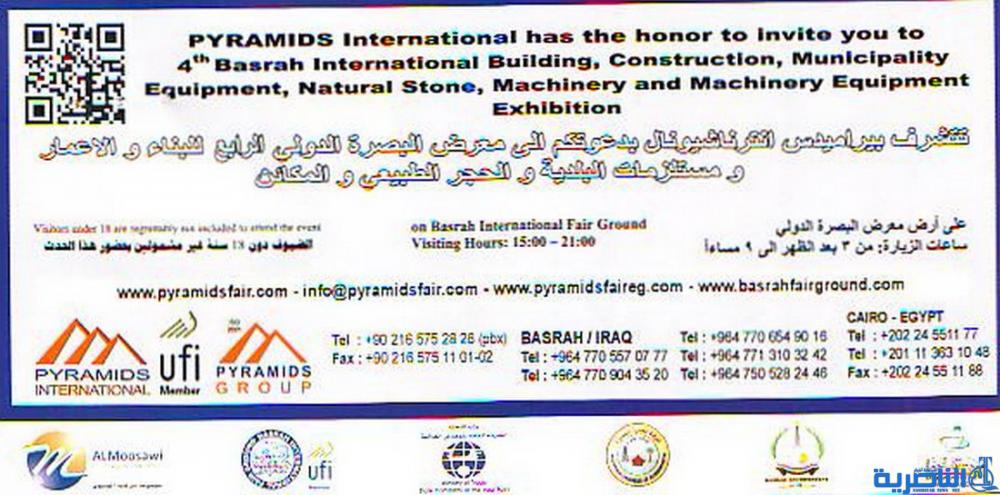 وجه اتحاد رجال الاعمال العراقيين في ذي قار دعوته لجميع اعضائه للمشاركة في معرض البصرة الدولي الرابع للبناء والاعمار ومستلزمات البلدية والحجر الطبيعي والمكائن والذي سيقام على ارض المعارض في محافظة البصرة للفترة 3-6/10/ تشرين الاول الجاري /2013
