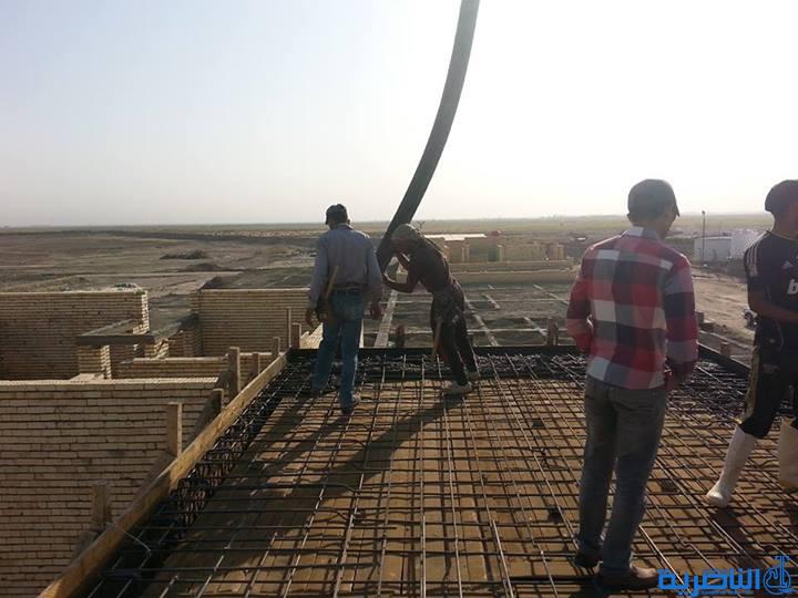 اعمال صب السقف لاول وحدة سكنية في مجمع الزقورة السكني