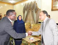 بحث محافظ ذي قار يحيى محمد باقر الناصري اليوم الاربعاء امكانية توظيف برامج الامم المتحدة لتطوير القدرات الادارية والاقتصادية في المحافظة مع مسؤول مكتب التنسيق المتكامل للتنمية والشؤون الانسانية في بعثة الامم المتحدة في جنوب العراق باتريك كيزيت .