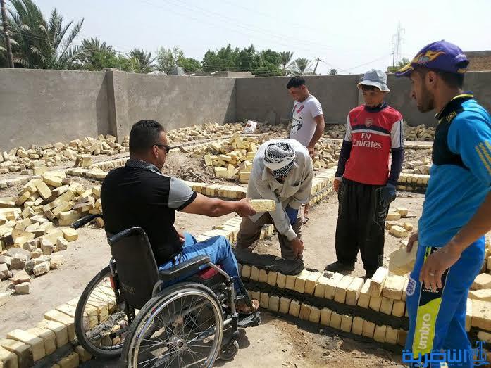 بالصور : مقعد على كرسي متحرك يتبنى حملة لبناء بيوت الشهداء في القلعة